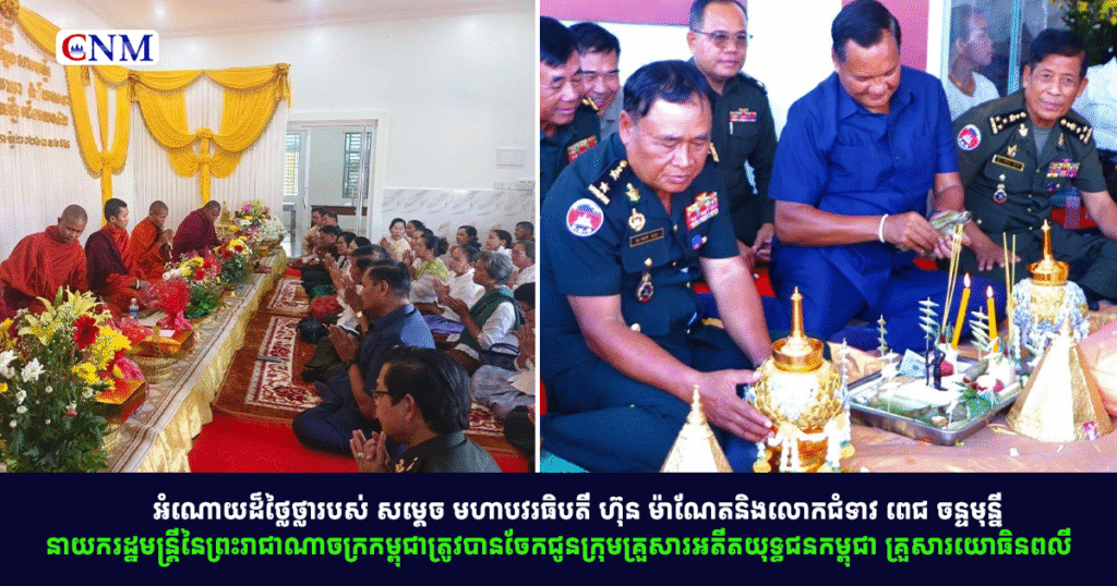 អំណោយដ៏ថ្លៃថ្លារបស់ សម្តេច មហាបវរធិបតី ហ៊ុន ម៉ាណែតនិងលោកជំទាវ ពេជ ចន្ទមុន្នី នាយករដ្ឋមន្ត្រីនៃព្រះរាជាណាចក្រកម្ពុជាត្រូវបានចែកជូនក្រុមគ្រួសារអតីតយុទ្ធជនកម្ពុជា គ្រួសារយោធិនពល
