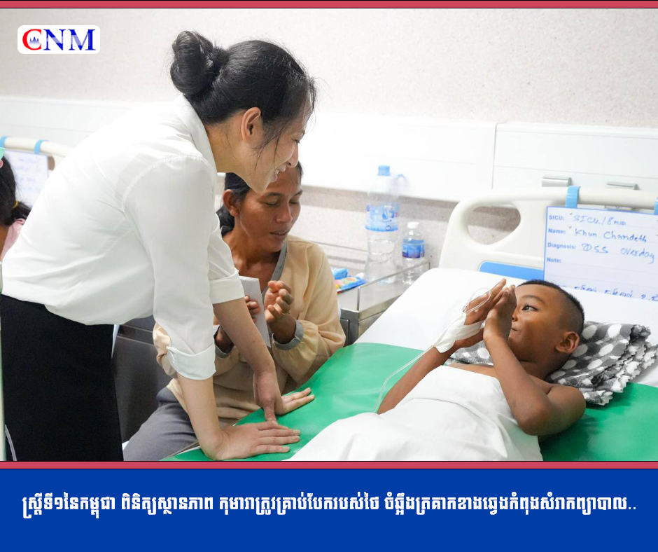 ស្ត្រីទី១នៃកម្ពុជា ពិនិត្យស្ថានភាព កុមារាត្រូវគ្រាប់បែករបស់ថៃ ចំឆ្អឹងត្រគាកខាងឆ្វេងកំពុងសំរាកព្យាបាល