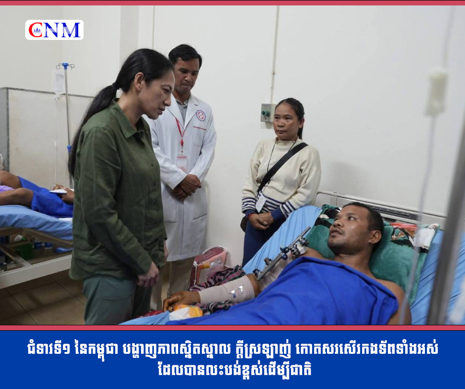 លោកជំទាវបណ្ឌិត ពេជ ចន្ទមុន្នី ហ៊ុនម៉ាណែត ជំទាវទី១ នៃកម្ពុជា បានថ្លែងដូច្នេះថា÷ នាងខ្ញុំ និងក្រុមការងារ បានចុះសួរសុខទុក្ខកងទ័ពរងរបួស...