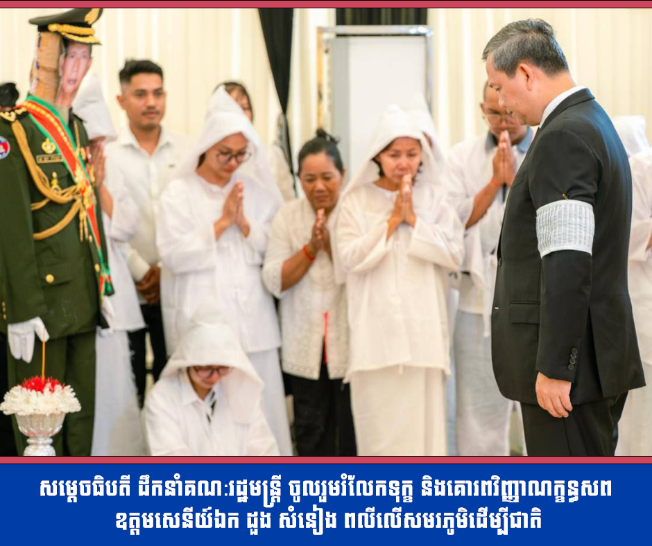 សម្តេចធិបតី ដឹកនាំគណ:រដ្ឋមន្ត្រី ចូលរួមរំលែកទុក្ខ និងគោរពវិញ្ញាណក្ខន្ធសព ឧត្តមសេនីយ៍ឯក ដួង សំនៀង ពលីលើសមរភូមិដើម្បីជាតិ