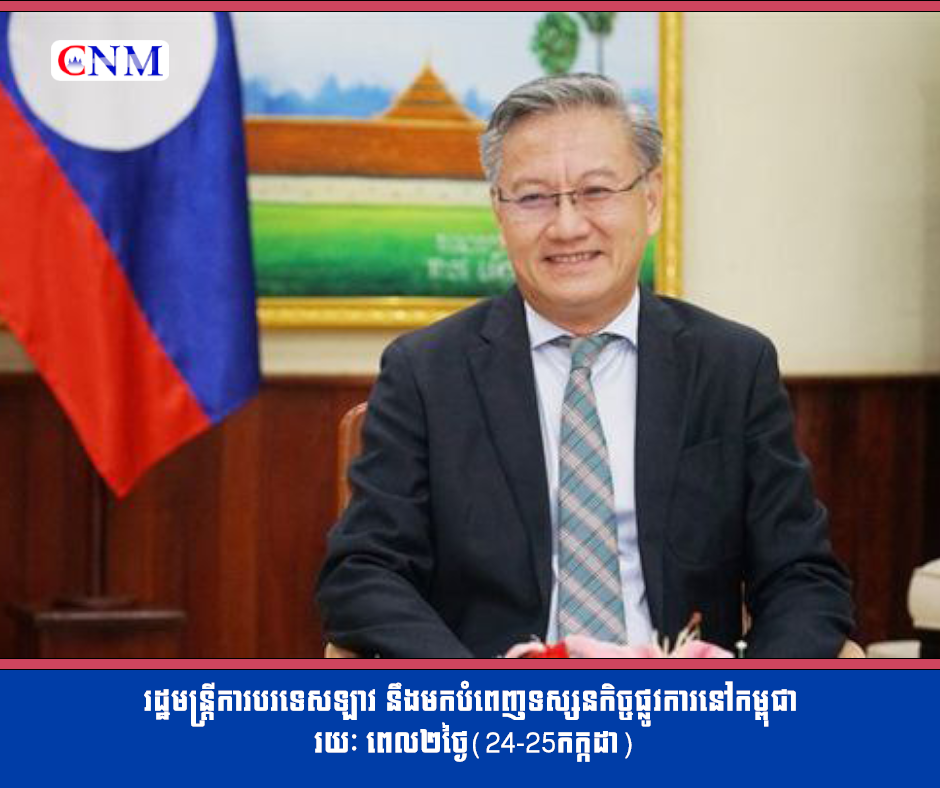 រដ្ឋមន្ត្រីការបរទេសឡាវ នឹងមកបំពេញទស្សនកិច្ចផ្លូវការនៅកម្ពុជា រយៈ ពេល២ថ្ងៃ(24-25កក្កដា)