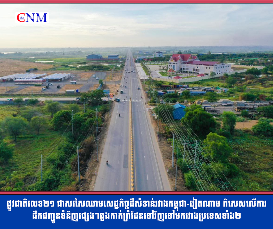 ផ្លូវជាតិលេខ២១ ជាសរសៃឈាមសេដ្ឋកិច្ចដ៏សំខាន់រវាងកម្ពុជា-វៀតណាម ពិសេសលើការដឹកជញ្ជូនទំនិញផ្សេងៗឆ្លងកាត់ព្រំដែនទៅវិញទៅមករវាងប្រទេសទាំង២