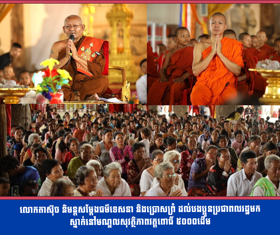 លោកតាស៊ុច និមន្តសម្តែងធម៌ទេសនា និងប្រោសព្រំ ដល់បងប្អូនប្រជាពលរដ្ឋមកស្នាក់នៅមណ្ឌលសុវត្ថិភាពវត្តពោធិ៍ ៥០០០ដើម