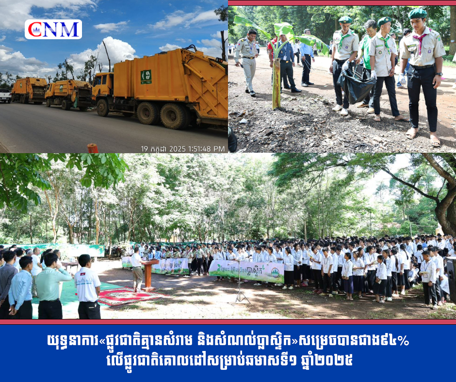 យុទ្ធនាការ«ផ្លូវជាតិគ្មានសំរាម និងសំណល់ប្លាស្ទិក»សម្រេចបានជាង៩៤% លើផ្លូវជាតិគោលដៅសម្រាប់ឆមាសទី១ ឆ្នាំ២០២៥