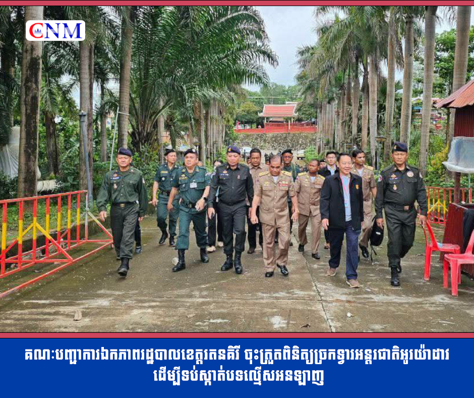 គណៈបញ្ជាការឯកភាពរដ្ឋបាលខេត្តរតនគិរី ចុះត្រួតពិនិត្យច្រកទ្វារអន្តរជាតិអូរយ៉ាដាវ ដើម្បីទប់ស្កាត់បទល្មើសអនឡាញ
