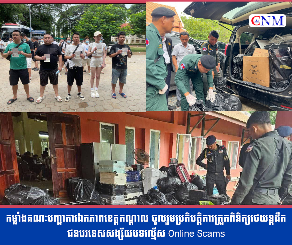 កម្លាំងគណៈបញ្ជាការឯកភាពខេត្តកណ្ដាល ចូលរួមប្រតិបត្តិការត្រួតពិនិត្យរថយន្តដឹកជនបរទេសសង្ស័យបទល្មើស Online Scams
