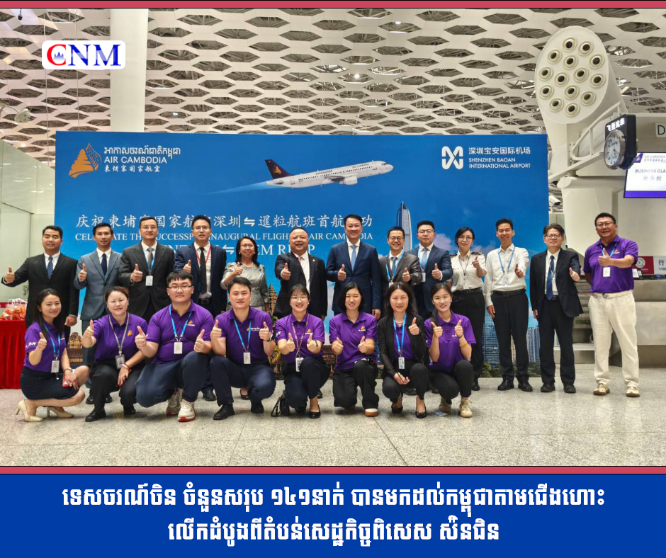 ទេសចរណ៍ចិន ចំនួនសរុប ១៤១នាក់ បានមកដល់កម្ពុជាតាមជើងហោះលើកដំបូងពីតំបន់សេដ្ឋកិច្ចពិសេស ស៉ិនជិន