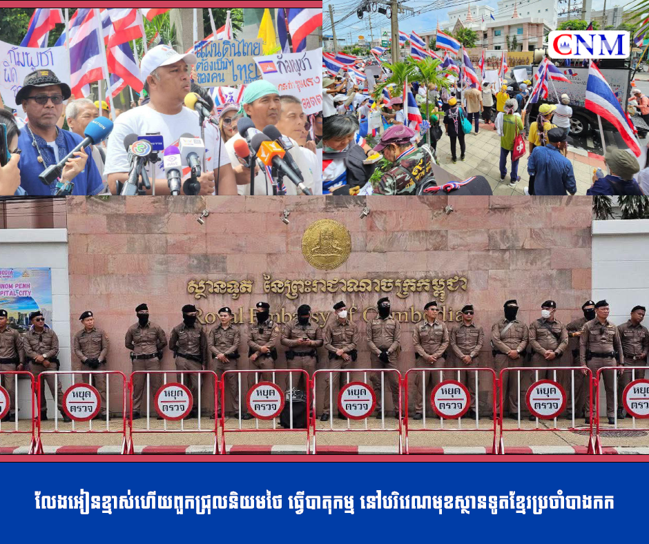 ថ្ងៃទី២០ ខែកក្កដា ឆ្នាំ២០២៥ ពួកក្រុមសៀមជ្រុលនិយមថៃ បានប្រមូលផ្តុំ ធ្វើបាតុកម្មនៅបរិវេណ មុខស្ថានទូតខ្មែរ ប្រចាំបាងកក ប្រទេសថៃ ដើម្បីតវ៉ារឿងដែលទាហានរបស់ខ្លួន...