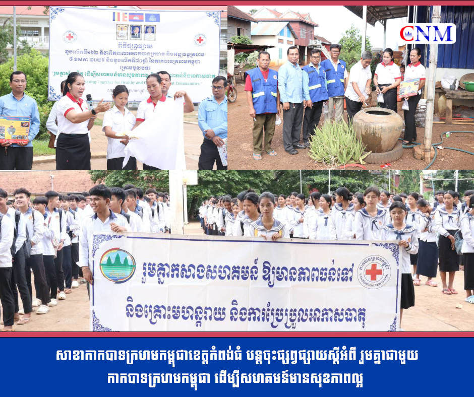 សាខាកាកបាទក្រហមកម្ពុជាខេត្តកំពង់ធំ បន្តចុះផ្សព្វផ្សាយស្ដីអំពី រួមគ្នាជាមួយកាកបាទក្រហមកម្ពុជា ដើម្បីសហគមន៍មានសុខភាពល្អ
