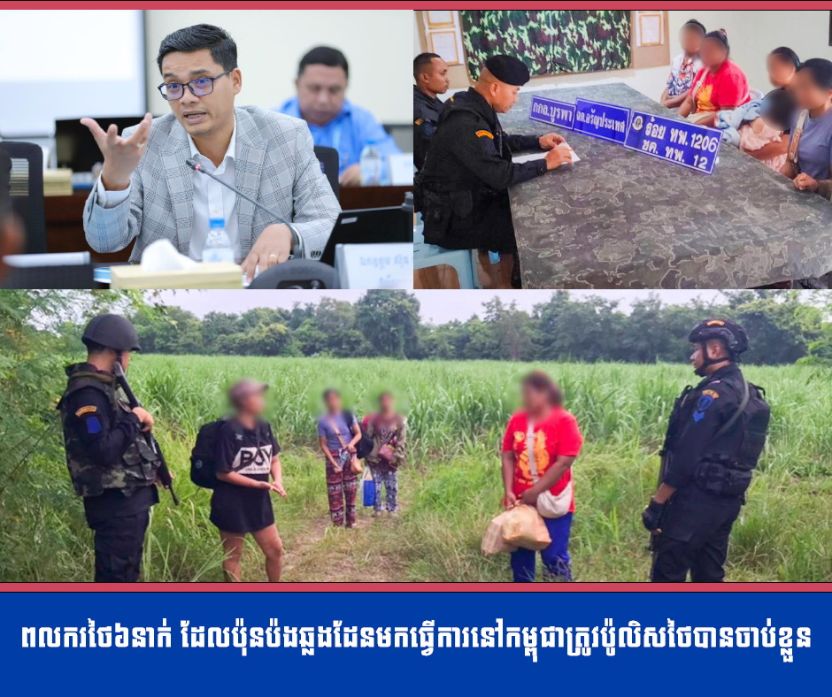 ពលករថៃ៦នាក់ ដែលប៉ុនប៉ងឆ្លងដែនមកធ្វើការនៅកម្ពុជាត្រូវប៉ូលិសថៃបានចាប់ខ្លួន