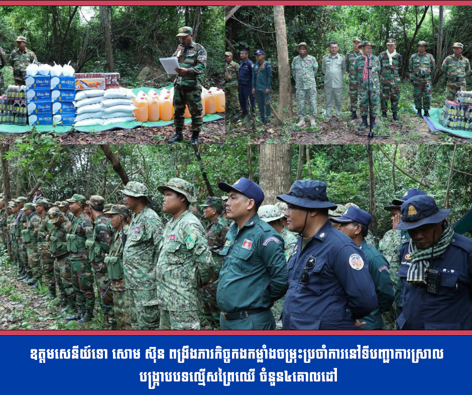 ឧត្តមសេនីយ៍ទោ សោម ស៊ុន ពង្រឹងភារកិច្ចកងកម្លាំងចម្រុះប្រចាំការនៅទីបញ្ជាការស្រាល បង្ក្រាបបទល្មើសព្រៃឈើ ចំនួន៤គោលដៅ