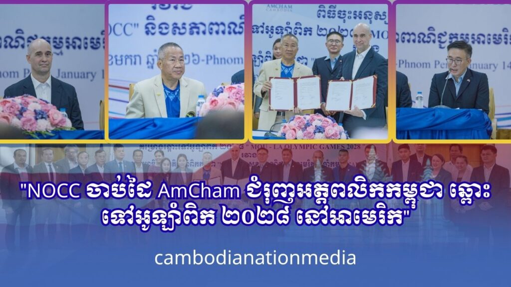 NOCC ចុះអនុស្សរណៈជាមួយ AmCham ដើម្បីស្វែងរកការឧបត្ថម្ភ និងពង្រឹងសមត្ថភាពអត្តពលិកឆ្ពោះទៅអូឡាំពិក ឆ្នាំ២០២៨