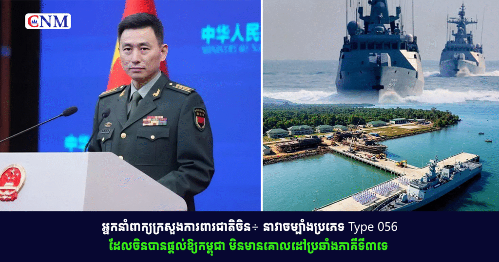 អ្នកនាំពាក្យក្រសួងការពារជាតិចិន÷ នាវាចម្បាំងប្រភេទ Type 056 ដែលចិនបានផ្តល់ឱ្យកម្ពុជា មិនមានគោលដៅប្រឆាំងភាគីទី៣ទេ