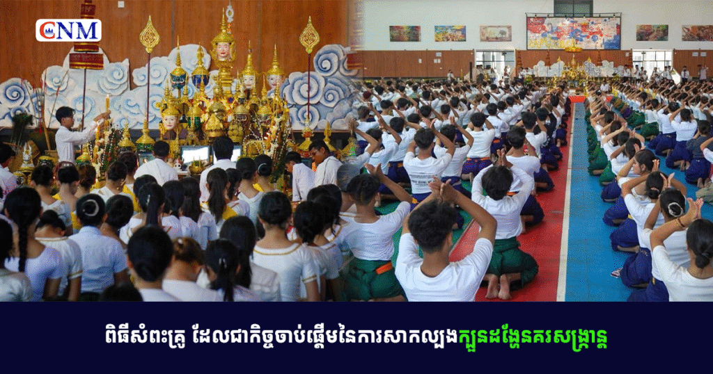 ពិធីសំពះគ្រូ ដែលជាកិច្ចចាប់ផ្ដើមនៃការសាកល្បងក្បួនដង្ហែនគរសង្ក្រាន្ត