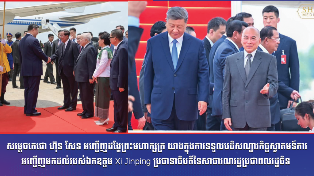 សម្ដេចតេជោ ហ៊ុន សែន អញ្ជើញដង្ហែព្រះមហាក្សត្រ យាងក្នុងការទទួលបដិសណ្ឋារកិច្ចស្វាគមន៍ការអញ្ជើញមកដល់របស់ឯកឧត្តម Xi Jinping ប្រធានាធិបតីនៃសាធារណរដ្ឋប្រជាពលរដ្ឋចិន