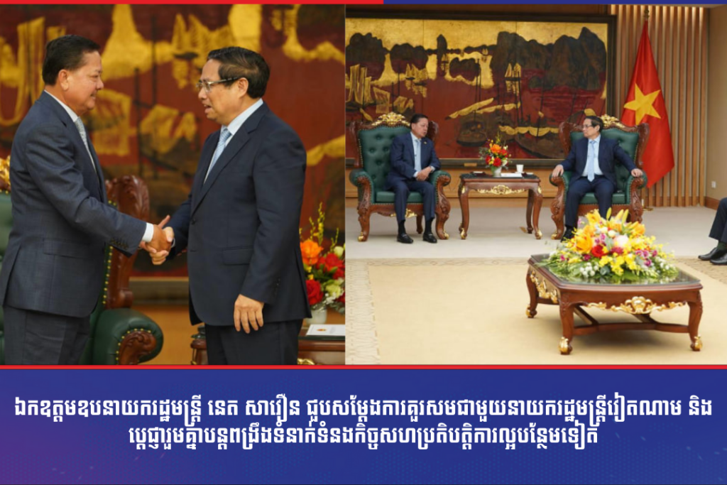 ឯកឧត្តមឧបនាយករដ្ឋមន្ដ្រី នេត សាវឿន ជួបសម្ដែងការគួរសមជាមួយនាយករដ្ឋមន្ដ្រីវៀតណាម និងប្ដេជ្ញារួមគ្នាបន្ដពង្រឹងទំនាក់ទំនងកិច្ចសហប្រតិបត្តិការល្អបន្ថែមទៀត