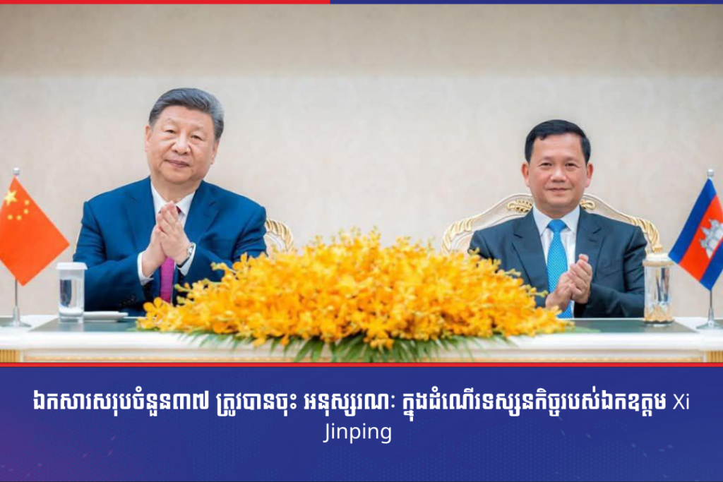 ឯកសារសរុបចំនួន៣៧ ត្រូវបានចុះ អនុស្សរណៈ ក្នុងដំណើរទស្សនកិច្ចរបស់ឯកឧត្តម Xi Jinping