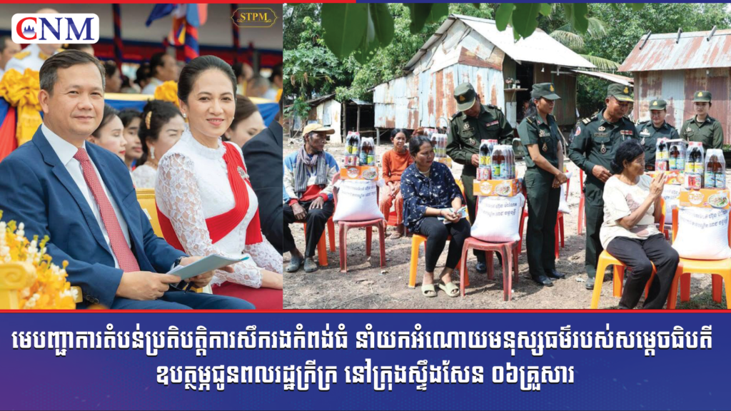 មេបញ្ជាការតំបន់ប្រតិបត្តិការសឹករងកំពង់ធំ នាំយកអំណោយមនុស្សធម៌របស់សម្ដេចធិបតី ឧបត្ថម្ភជូនពលរដ្ឋក្រីក្រ នៅក្រុងស្ទឹងសែន ០៦គ្រួសារ