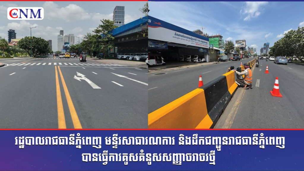 រដ្ឋបាលរាជធានីភ្នំពេញ មន្ទីរសាធារណការ និងដឹកជញ្ជូនរាជធានីភ្នំពេញ បានធ្វើការគូសគំនូសសញ្ញាចរាចរថ្មី និងលាបថ្នាំរបាំងបែងចែកទ្រូងផ្លូវ ចាប់ពីស្តុប BKC មហាវិថី សហព័ន្ធរុស្សី រហូតដល់អាកាសយន្តដ្ឋានអន្តរជាតិភ្នំពេញ..