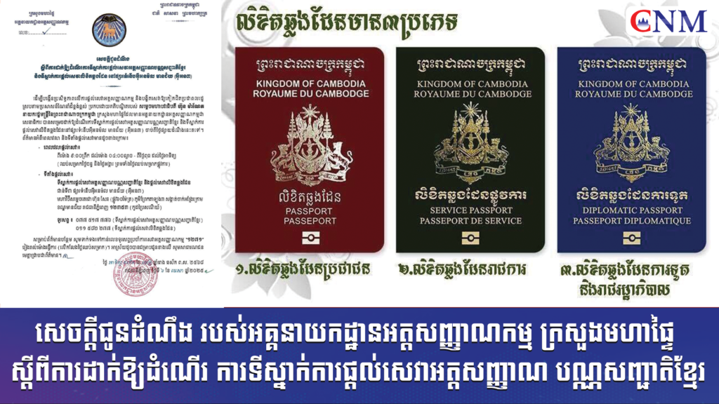 និងទីស្នាក់ការ ផ្តល់សេវាលិខិតឆ្លងដែន នៅផ្សារទំនើបអុីអនម៉ល មានជ័យ (អ៉ីអន៣) ចាប់ពីថ្ងៃផ្សាយជូនដំណឹងនេះតទៅ..