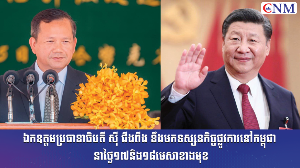 ឯកឧត្តមប្រធានាធិបតី ស៊ី ជីងពីង នឹងមកទស្សនកិច្ចផ្លូវការនៅកម្ពុជា នាថ្ងៃ១៧និង១៨មេសាខាងមុខ..