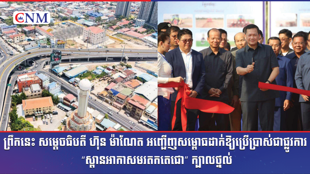 ព្រឹកនេះ សម្តេចធិបតី ហ៊ុន ម៉ាណែត អញ្ជើញសម្ពោធដាក់ឱ្យប្រើប្រាស់ជាផ្លូវការ “ស្ពានអាកាសមរតកតេជោ” ក្បាលថ្នល់