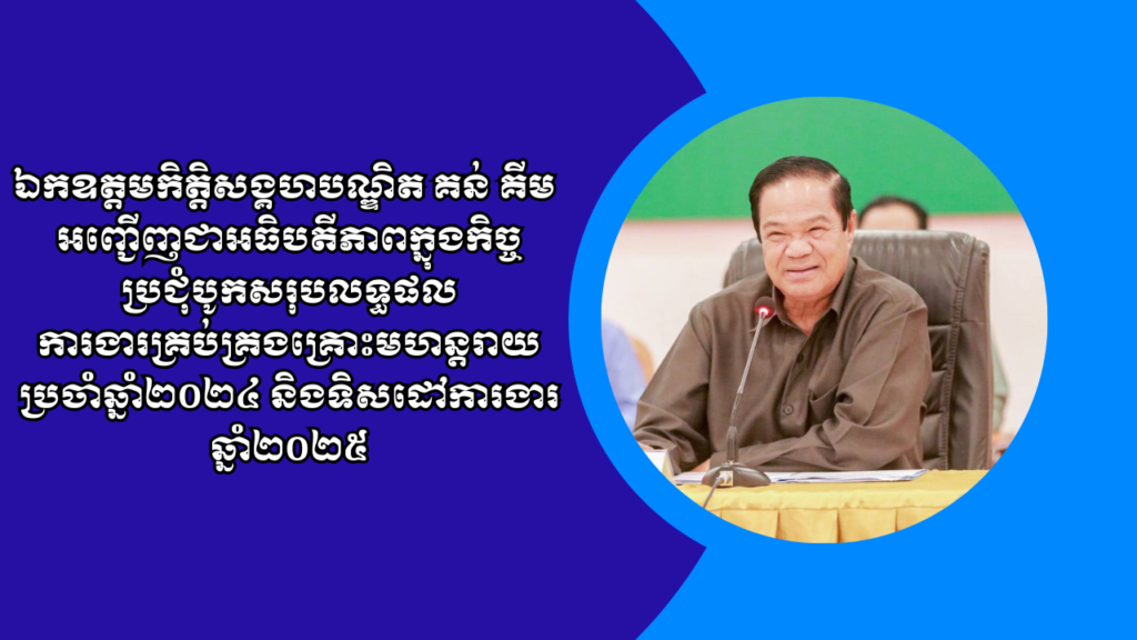 ឯកឧត្តមកិត្តិសង្គហបណ្ឌិត គន់ គីម អញ្ជើញជាអធិបតីក្នុងកិច្ចប្រជុំបូកសរុបលទ្ធផលការងារគ្រប់គ្រងគ្រោះមហន្តរាយឆ្នាំ២០២៤ និង ទិសដៅការងារឆ្នាំ២០២៥