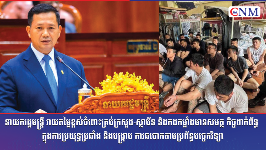 នាយករដ្ឋមន្ត្រី វាយតម្លៃខ្ពស់ចំពោះគ្រប់ក្រសួង-ស្ថាប័ន និងកងកម្លាំងមានសមត្ថ កិច្ចពាក់ព័ន្ធ ក្នុងការប្រយុទ្ធប្រឆាំង និងបង្ក្រាប ការឆបោកតាមប្រព័ន្ធបច្ចេកវិទ្យា (ONLINE SCAMS)