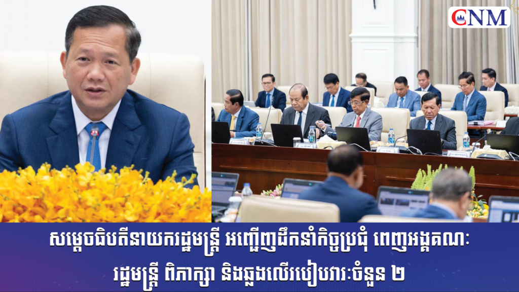 សម្ដេចធិបតីនាយករដ្ឋមន្រ្ដី អញ្ជើញដឹកនាំកិច្ចប្រជុំ ពេញអង្គគណៈរដ្ឋមន្ត្រី ពិភាក្សា និងឆ្លងលើរបៀបវារៈចំនួន ២