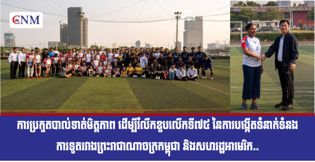 ក្រសួងការបរទេស និងសហប្រតិបត្តិការអន្តរជាតិ និងស្ថានទូតសហរដ្ឋអាមេរិកប្រចាំកម្ពុជា បានរួមគ្នារៀបចំការប្រកួតបាល់ទាត់មិត្តភាព ដើម្បីរំលឹកខួបលើកទី៧៥ នៃការបង្កើតទំនាក់ទំនងការទូតរវាងព្រះរាជាណាចក្រកម្ពុជា និងសហរដ្ឋអាមេរិក..