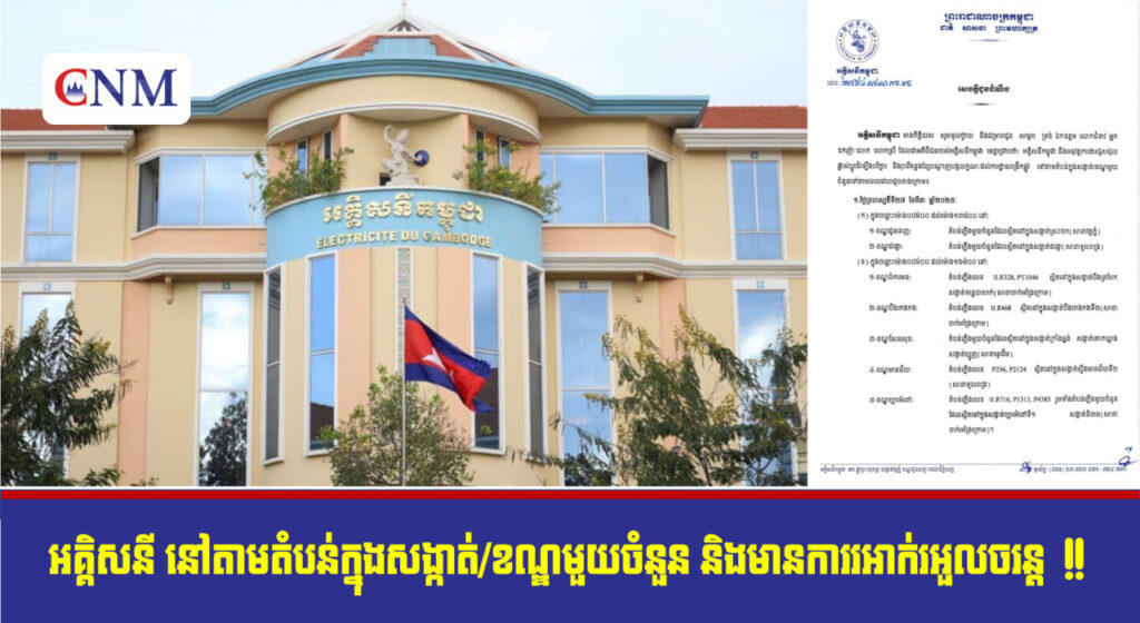 📣អគ្គិសនី នៅតាមតំបន់ក្នុងសង្កាត់/ខណ្ឌមួយចំនួន និងមានការរអាកើរអួលចរន្ត‼️