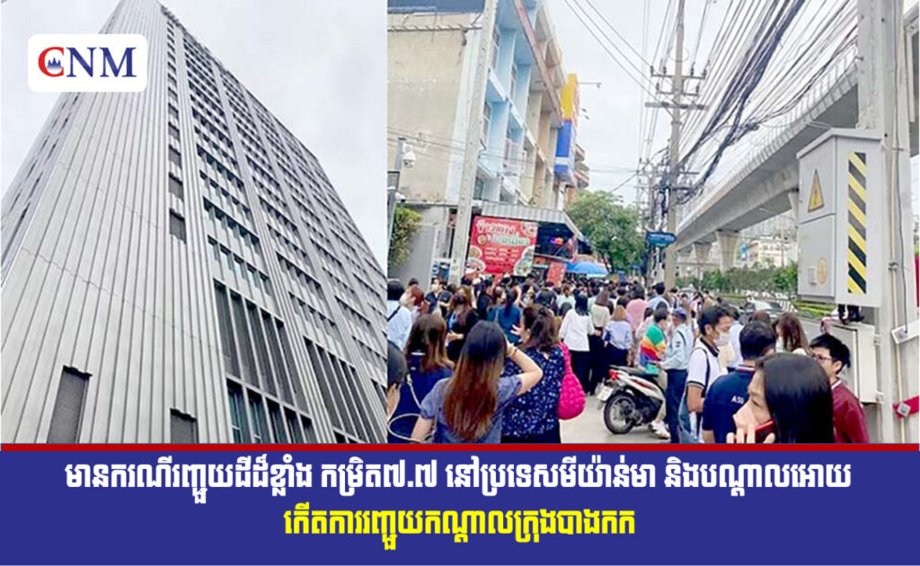🔴មានករណីរញ្ជួយដីដ៍ខ្លាំង កម្រិត៧.៧ នៅប្រទេសមីយ៉ាន់មា និងបណ្តាលអោយ កើតការរញ្ជួយកណ្តាលក្រុងបាងកក