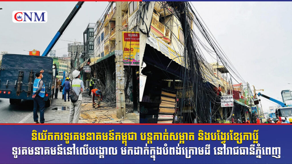 📣និយ័តករទូរគមនាគមន៍កម្ពុជា បន្តកាត់សម្អាត និងបង្វែរខ្សែកាប្លិ៍ ទូរគមនាគមន៍នៅលើបង្គោល មកដាក់ក្នុងបំពង់ក្រោមដី នៅរាជធានីភ្នំពេញ..
