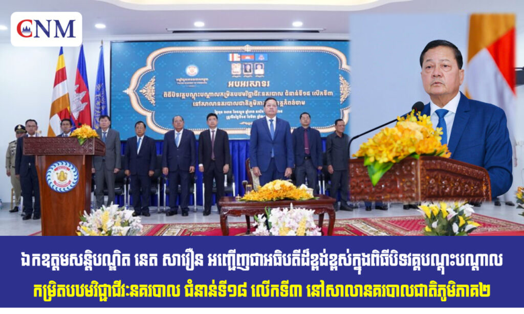 📣 ឯកឧត្តមសន្តិបណ្ឌិត នេត សាវឿន អញ្ជើញជាអធិបតីដ៏ខ្ពង់ខ្ពស់ក្នុងពិធីបិទវគ្គបណ្តុះបណ្តាលកម្រិតបឋមវិជ្ជាជីវៈនគរបាល ជំនាន់ទី១៨ លើកទី៣ នៅសាលានគរបាលជាតិភូមិភាគ២
