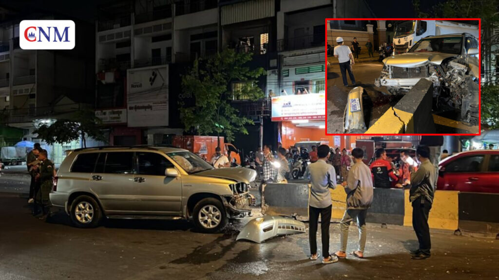 📣បើករថយន្តលឿនបានជ្រុលចង្កូត ទៅបុកក្បាលរបាំងពុះចែកទ្រូងផ្លូវពេញទំហឹង