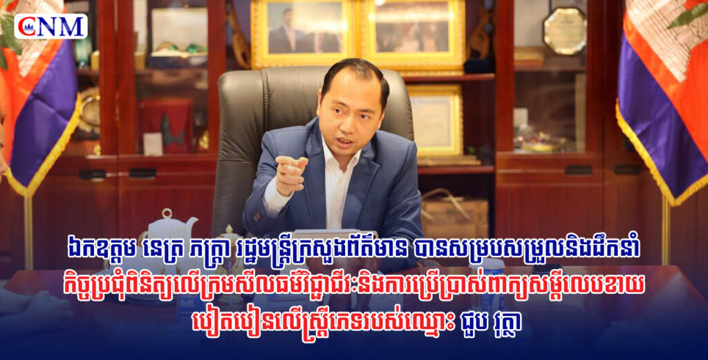 📣ឯកឧត្តម នេត្រ ភក្ត្រា រដ្ឋមន្ត្រីក្រសួងព័ត៌មាន បានសម្របសម្រួលនិងដឹកនាំកិច្ចប្រជុំពិនិត្យលើក្រមសីលធម៌វិជ្ជាជីវៈ និងការប្រើប្រាស់ពាក្យសម្តីលេបខាយ បៀតបៀនលើស្ត្រីភេទរបស់ឈ្មោះ ជួប វុត្ថា