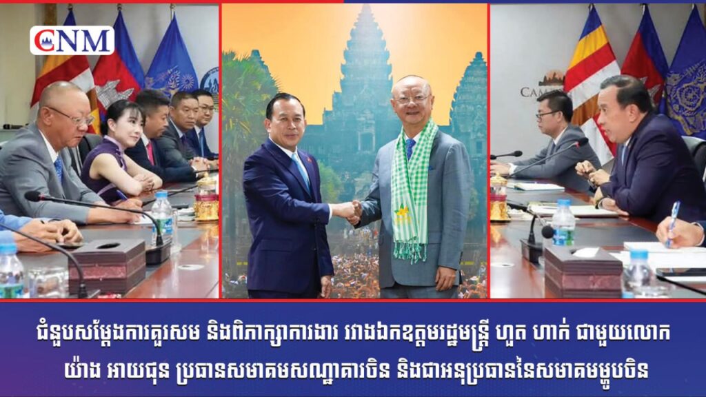 ជំនួបសម្តែងការគួរសម និងពិភាក្សាការងារ រវាងឯកឧត្តមរដ្ឋមន្ត្រី ហួត ហាក់ ជាមួយលោក យ៉ាង អាយជុន ប្រធានសមាគមសណ្ឋាគារចិន និងជាអនុប្រធាននៃសមាគមម្ហូបចិន