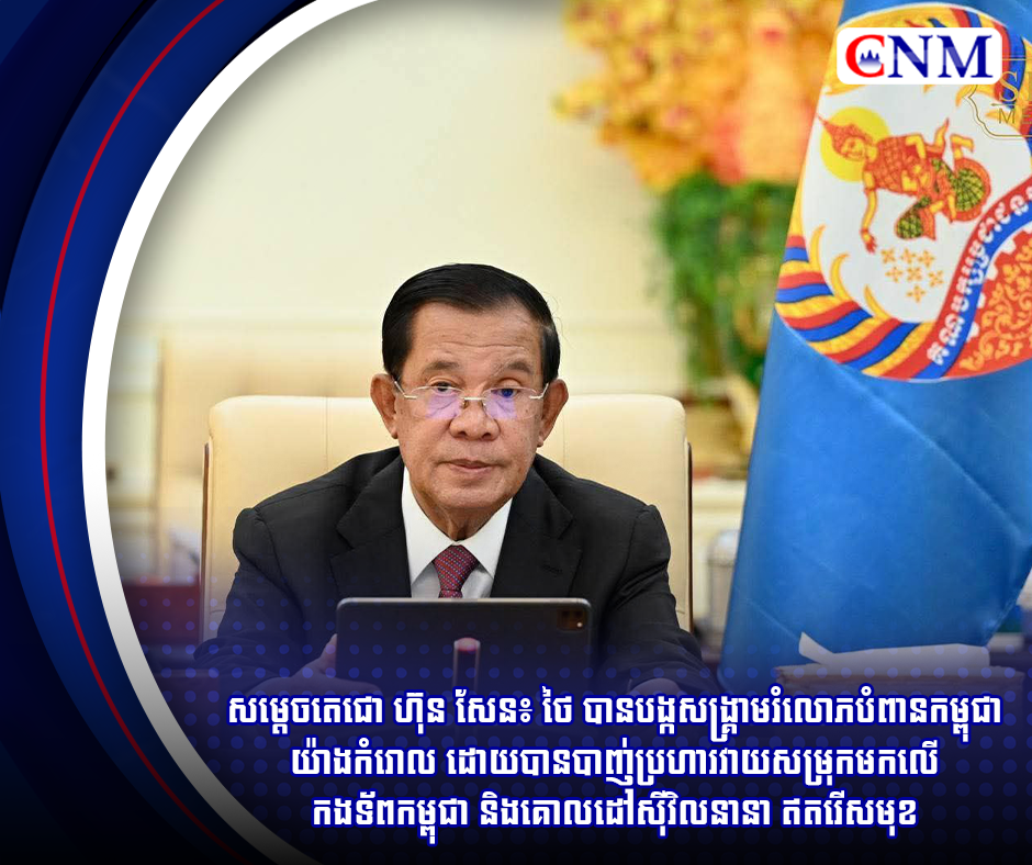 សម្តេចតេជោ ហ៊ុន សែន៖ ថៃ បានបង្កសង្គ្រាមរំលោភបំពានកម្ពុជាយ៉ាងកំរោល ដោយបានបាញ់ប្រហារវាយសម្រុកមកលើកងទ័ពកម្ពុជា និងគោលដៅស៊ីវិលនានា ឥតរើសមុខ
