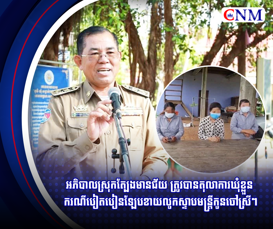 អភិបាលស្រុកត្បែងមានជ័យ ត្រូវបានតុលាការឃុំខ្លួន ករណីបៀតបៀនឡែបខាយលូកស្ទាបមន្ត្រីកូនចៅស្រីៗ