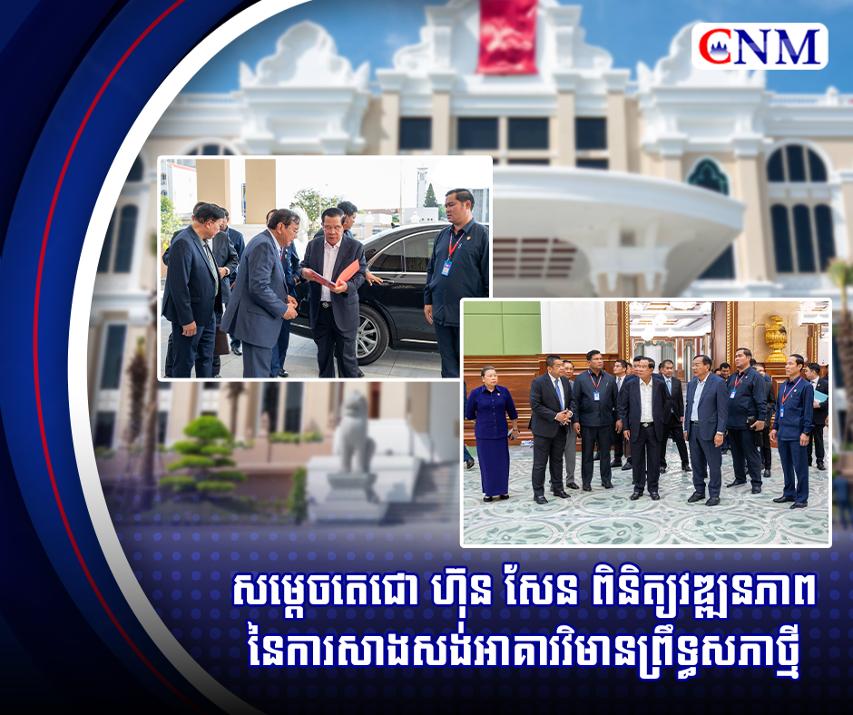 សម្តេចតេជោ ហ៊ុន សែន ពិនិត្យវឌ្ឍនភាពនៃការសាងសង់អាគារវិមានព្រឹទ្ធសភាថ្មី