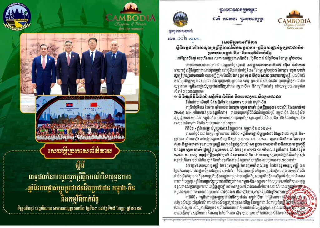 📣សេចក្តីប្រកាសព័ត៌មាន ស្តីពីលទ្ធផលនៃការចូលរួមព្រឹត្តិការណ៍បិទយុទ្ធនាការ «ឆ្នាំនៃការផ្លាស់ប្តូរប្រជាជននិងប្រជាជន កម្ពុជា-ចិន និងកម្មវិធីពាក់ព័ន្ធ»