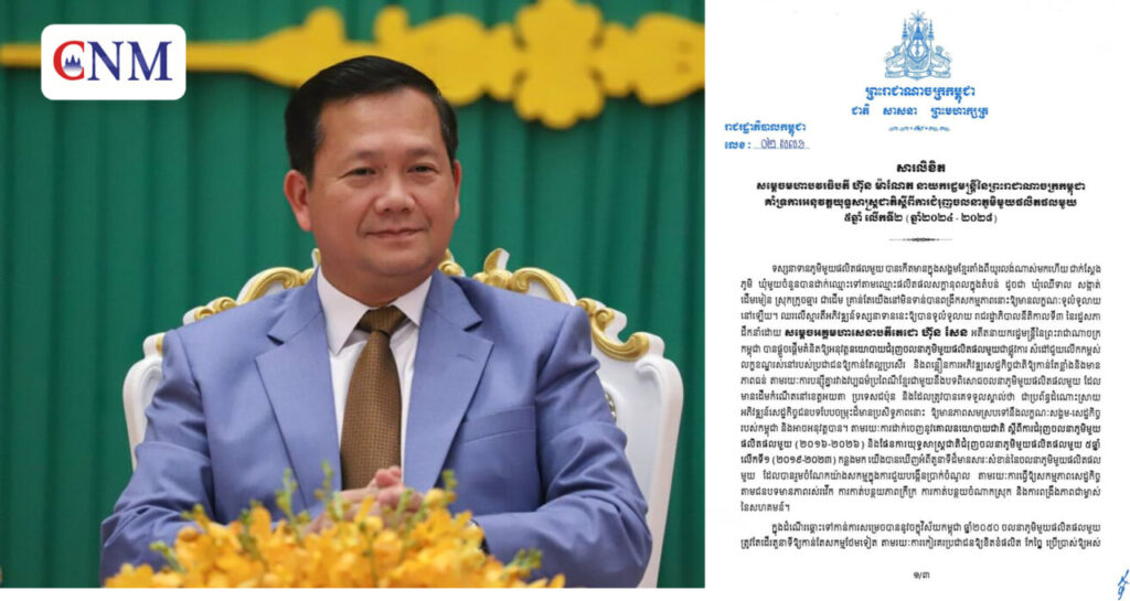 📣សារលិខិត សម្តេចមហាបវរធិបតី ហ៊ុន ម៉ាណែត នាយករដ្ឋមន្ត្រីនៃព្រះរាជាណាចក្រកម្ពុជា គាំទ្រការអនុវត្តយុទ្ធសាស្ត្រជាតិស្តីពីការជំរុញចលនាភូមិមួយផលិតផលមួយ ៥ឆ្នាំ លើកទី២ (ឆ្នាំ២០២៤ – ២០២៨)