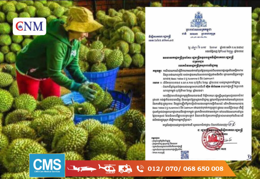 រាជរដ្ឋាភិបាលកម្ពុជា ហាមឃាត់ការនាំផ្លែទុរេនពីប្រទេសវៀតណាម និងប្រទេសថៃ បន្ទាប់ពី អាជ្ញាធរគយប្រទេសចិនរកឃេីញ សារធាតុគីមី ដែលនាំអោយប៉ះពាល់ដល់សុខភាព ប្រជាពលរដ្ឋ។