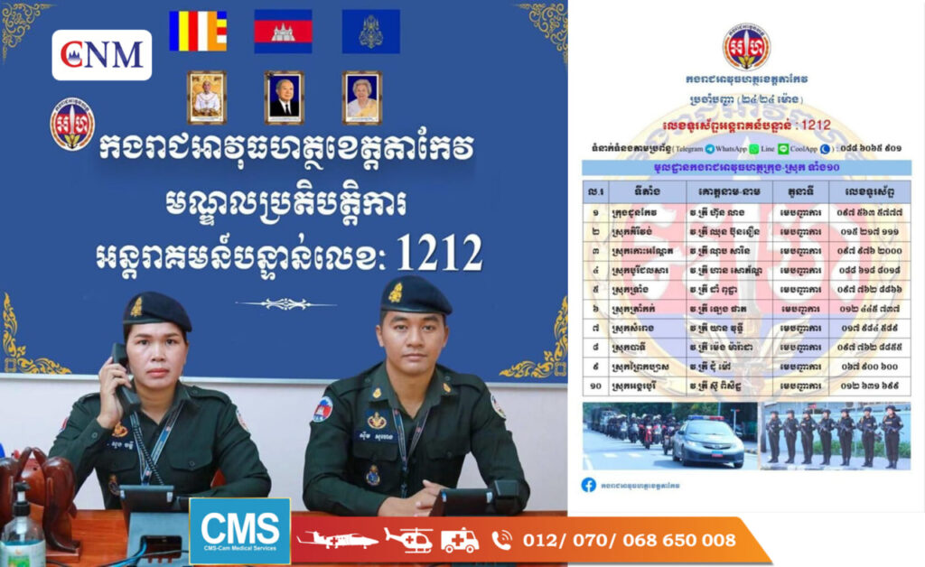 📣មេបញ្ជាការអាវុធហត្ថខេត្តតាកែវ ប្រកាសលេខទូរស័ព្ទ 1212 សម្រាប់ឱ្យពលរដ្ឋរាយការណ៍ភ្លាមៗ