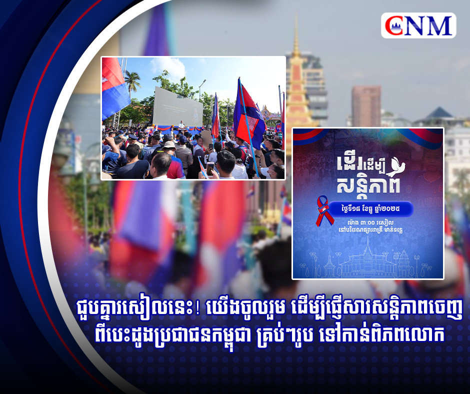 ជួបគ្នារសៀលនេះ! យើងចូលរួម ដើម្បីផ្ញើសារសន្តិភាពចេញពីបេះដូងប្រជាជនកម្ពុជា គ្រប់ៗរូប ទៅកាន់ពិភពលោក