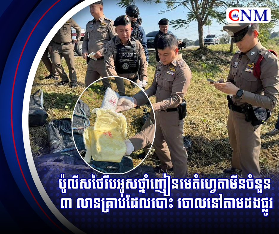 ប៉ូលីសថៃរឹបអូសថ្នាំញៀនមេតំហ្វេតាមីនចំនួន ៣ លានគ្រាប់ដែលបោះ ចោលនៅតាមដងផ្លូវ