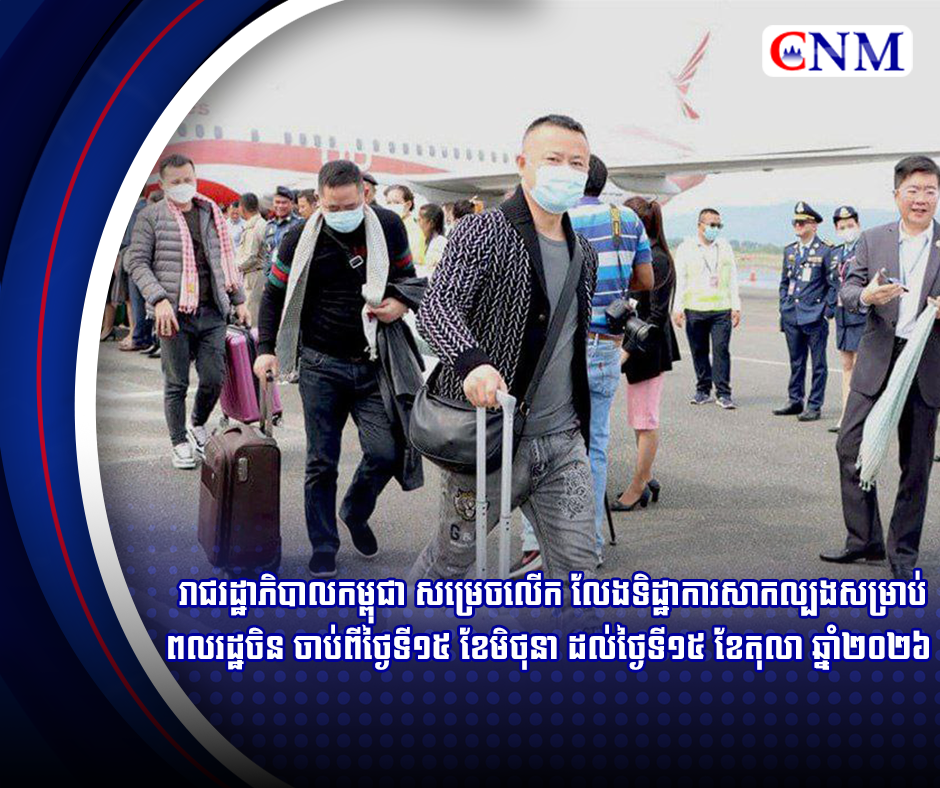 រាជរដ្ឋាភិបាលកម្ពុជា សម្រេចលើក លែងទិដ្ឋាការសាកល្បងសម្រាប់ពលរដ្ឋចិន ចាប់ពីថ្ងៃទី១៥ ខែមិថុនា ដល់ថ្ងៃទី១៥ ខែតុលា ឆ្នាំ២០២៦