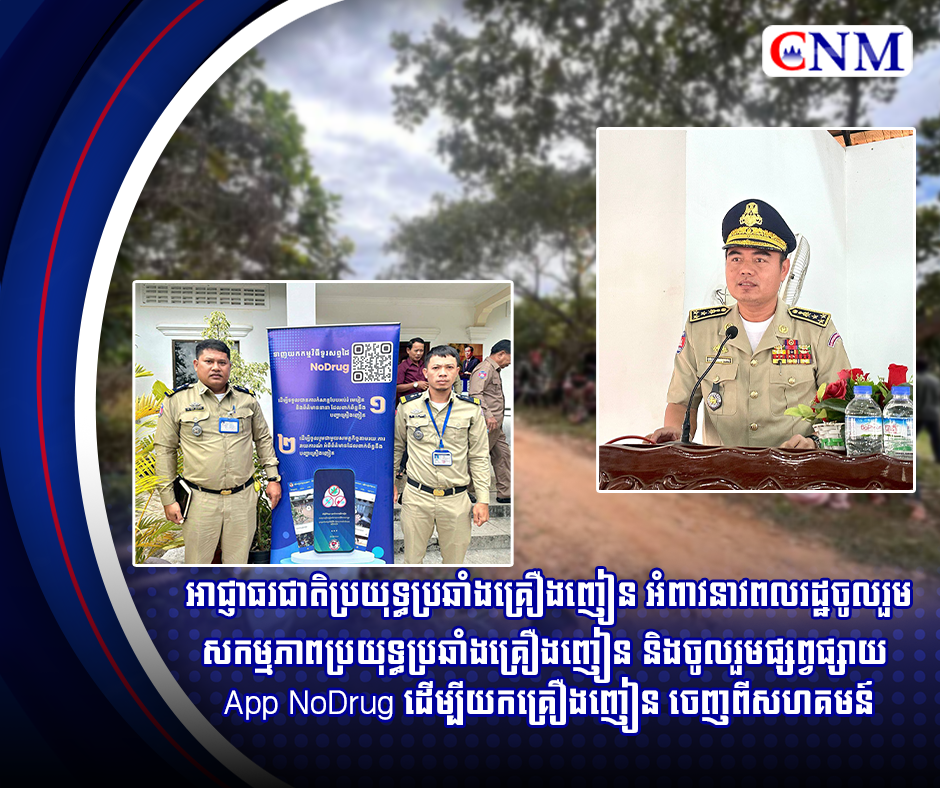អាជ្ញាធរជាតិប្រយុទ្ធប្រឆាំងគ្រឿងញៀន អំពាវនាវពលរដ្ឋចូលរួមសកម្មភាពប្រយុទ្ធប្រឆាំងគ្រឿងញៀន និងចូលរួមផ្សព្វផ្សាយ App NoDrug ដើម្បីយកគ្រឿងញៀន ចេញពីសហគមន៍