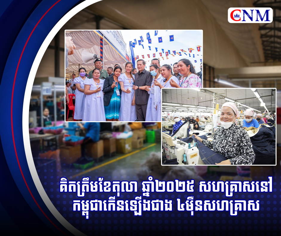 គិតត្រឹមខែតុលា ឆ្នាំ២០២៥ សហ គ្រាសនៅកម្ពុជា កើនឡើងជាង ៤ម៉ឺន ខណៈវិស័យកាត់ដេរកើនឡើងដល់ ១៨១០ រោងចក្រសហគ្រាស ដែលបានផ្តល់ឱកាសការងារដល់កម្មករនិយោជិតប្រមាណជាង...