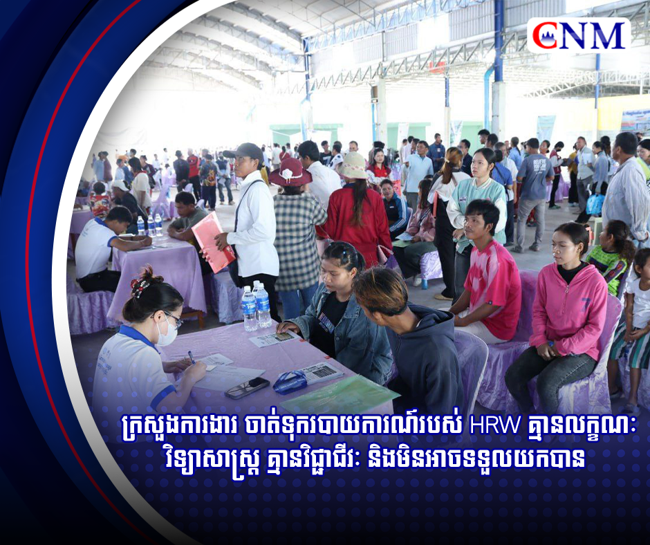 ក្រសួងការងារ ចាត់ទុករបាយការណ៍របស់ HRW គ្មានលក្ខណៈវិទ្យាសាស្ត្រ គ្មានវិជ្ជាជីវៈ និងមិនអាចទទួលយកបាន